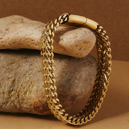 La mayoría de nuestros productos están elaborados con acero inoxidable o acero de titanio chapados en oro de 18k, que no se pierde su color, no se oxida y te ofrece una una relación calidad/costo que te vuela la cabeza. Empieza a armar tu colección hoy mismo!